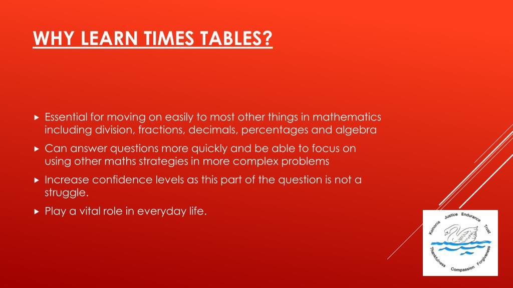 Stock primary Number facts awards. June 2014. Essential for moving on easily to most other things in mathematics including division, fractions, decimals, percentages and algebra Can answer questions more quickly and be able to focus on using other maths strategies in more complex problems