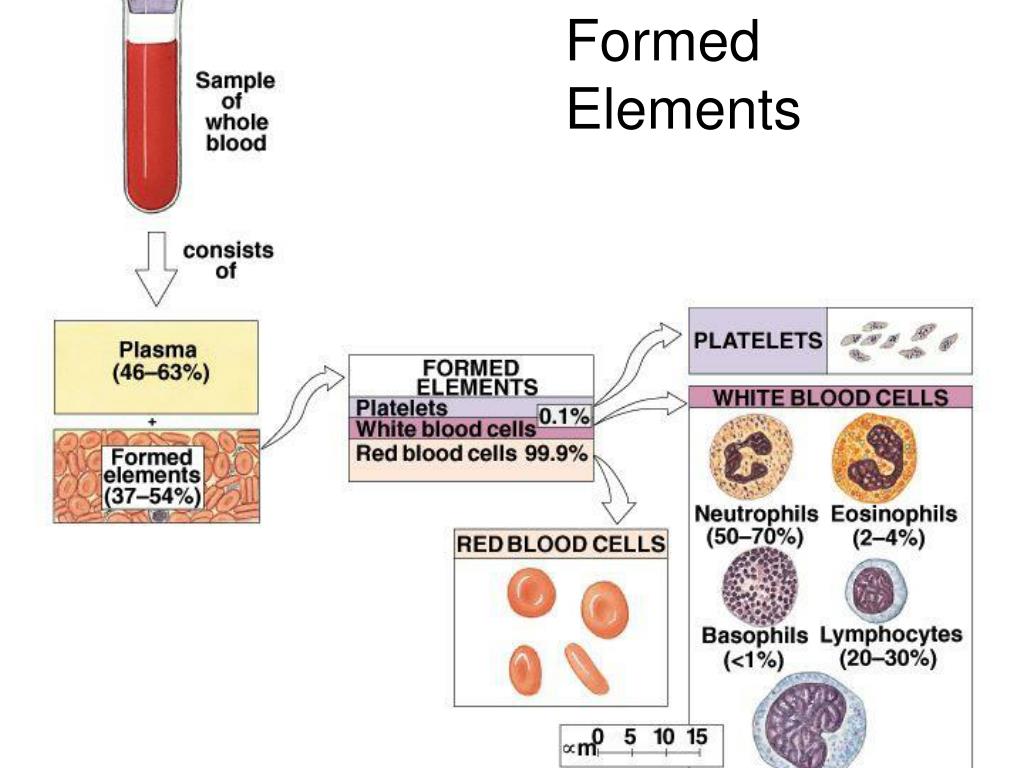 Formed Elements • These are the cells (and quasi-cellular) constituents of blood • Red blood cells (RBCs) make up 99.9% of blood’s formed elements • White blood cells and platelets make up the rest