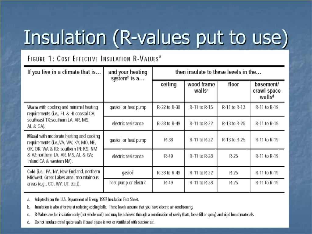 Model Energy Code • The Energy Star standard for new homes is measured by the Home Energy Rating System (HERS) scoring. • The HERS rating is a calculation of the energy efficiency of a home compared to an identical ‘house’ that meets the minimum requirements of the Model Energy Code (MEC). • The HERS score will be between 0 and 100. • The reference ‘house’ will have a score of 80. • Each 5% reduction in energy usage will result in an additional point on the HERS scale. • An Energy Star home must receive a score of at least 86 on the HERS score.
