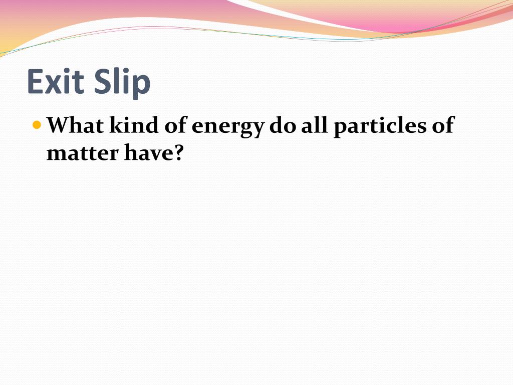 Exit Slip • What kind of energy do all particles of matter have?