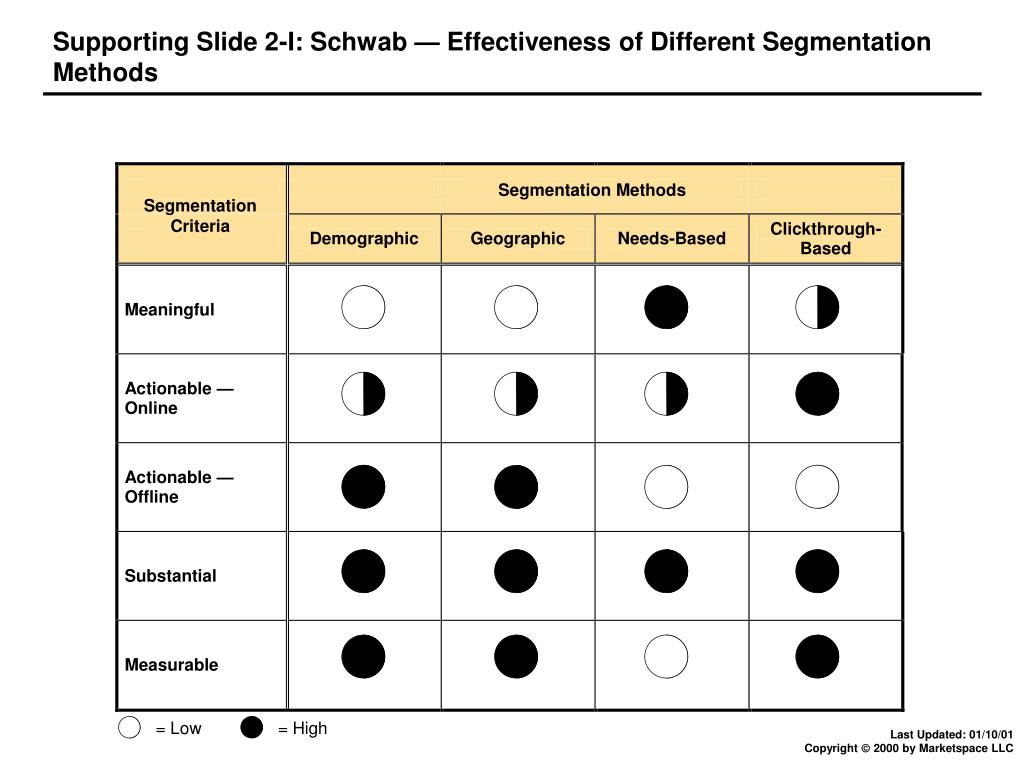 Supporting Slide 2-I: Schwab — Effectiveness of Different Segmentation Methods = Low = High Segmentation Methods Segmentation Criteria