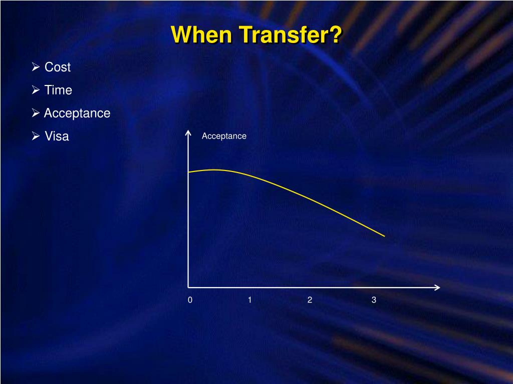 0 1 2 3 When Transfer? • Cost • Time • Acceptance • Visa Acceptance