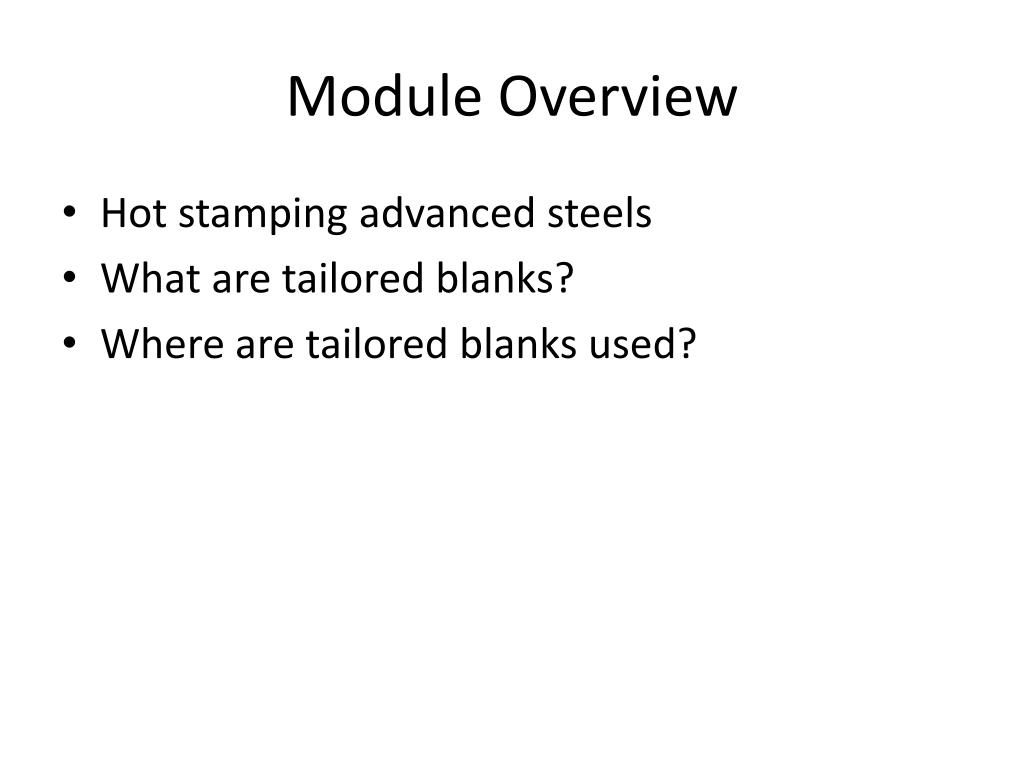 Module Overview • Hot stamping advanced steels • What are tailored blanks? • Where are tailored blanks used?