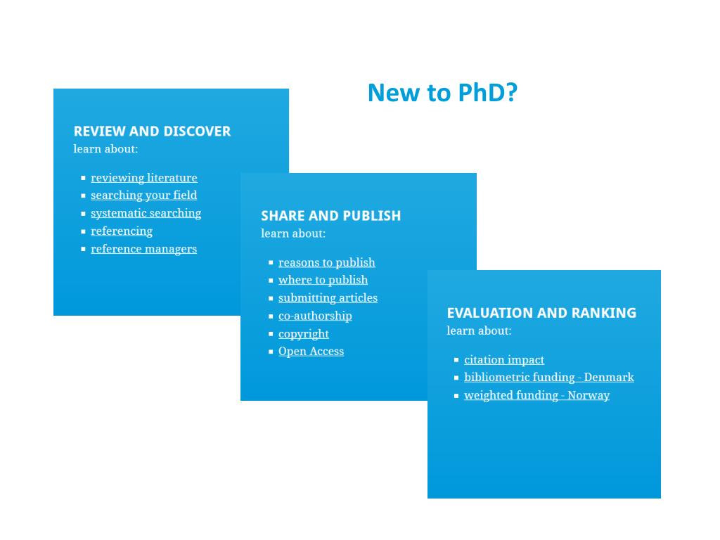 Målsettinger • oppdatert kunnskap om ph.d.-kandidaters informasjonsatferd og –behov • gratis tilgjengelige nettbasertemoduler • engelskspråklig moduler skreddersydd for ph.d.-kandidater • økt synliggjøring og relevans av bibliotek i ph.d.-kandidaters utdanningsløp og forskningsprosess
