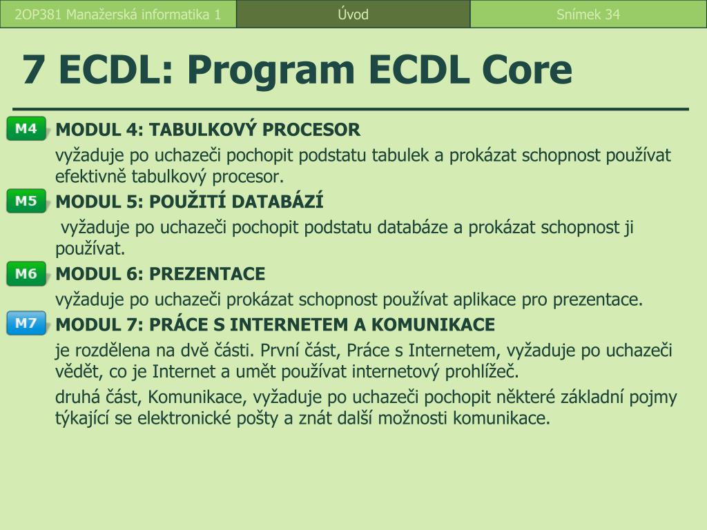 Úvod 7 ECDL: Certifikát ECDL Profile • Certifikát ECDL Modular obsahuje aktuální souhrnný výčet všech úspěšně složených modulů ECDL z libovolných ECDL programů