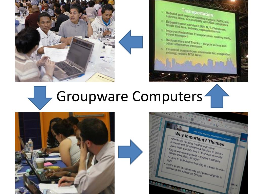 Flint, Michigan • 400 participants, 4 hours • 50 volunteers, 8 hours • 2,000 hours of community service • 40 tables, 2 hours in small group discussion • 80 hours of dialogue • 43,000 words captured in groupware computers • 8,000 data points from keypad polling
