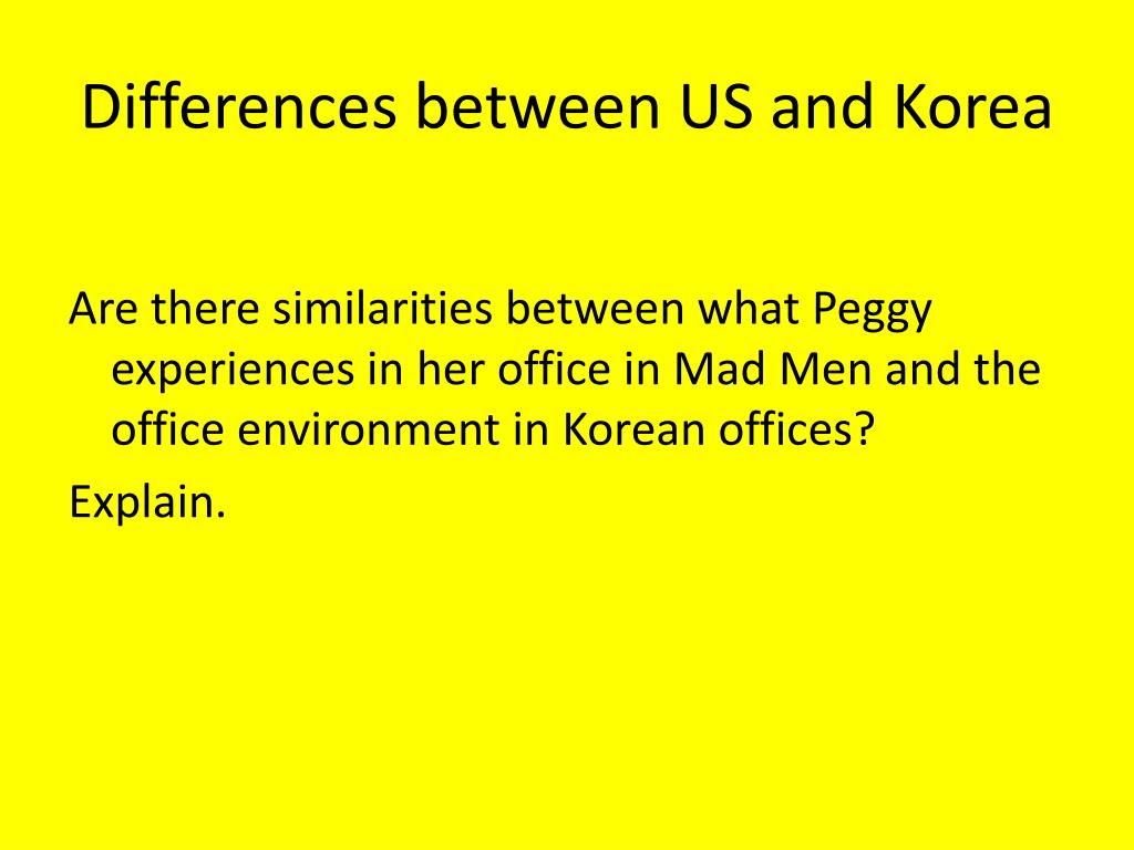 Differences between US and Korea Are there similarities between what Peggy experiences in her office in Mad Men and the office environment in Korean offices? Explain.