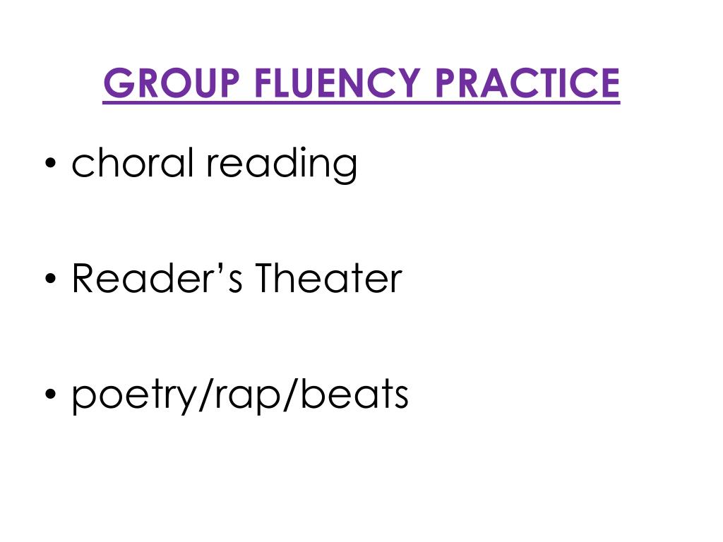 GROUP FLUENCY PRACTICE • choral reading • Reader’s Theater • poetry/rap/beats