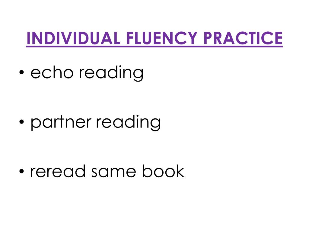 INDIVIDUAL FLUENCY PRACTICE • echo reading • partner reading • reread same book