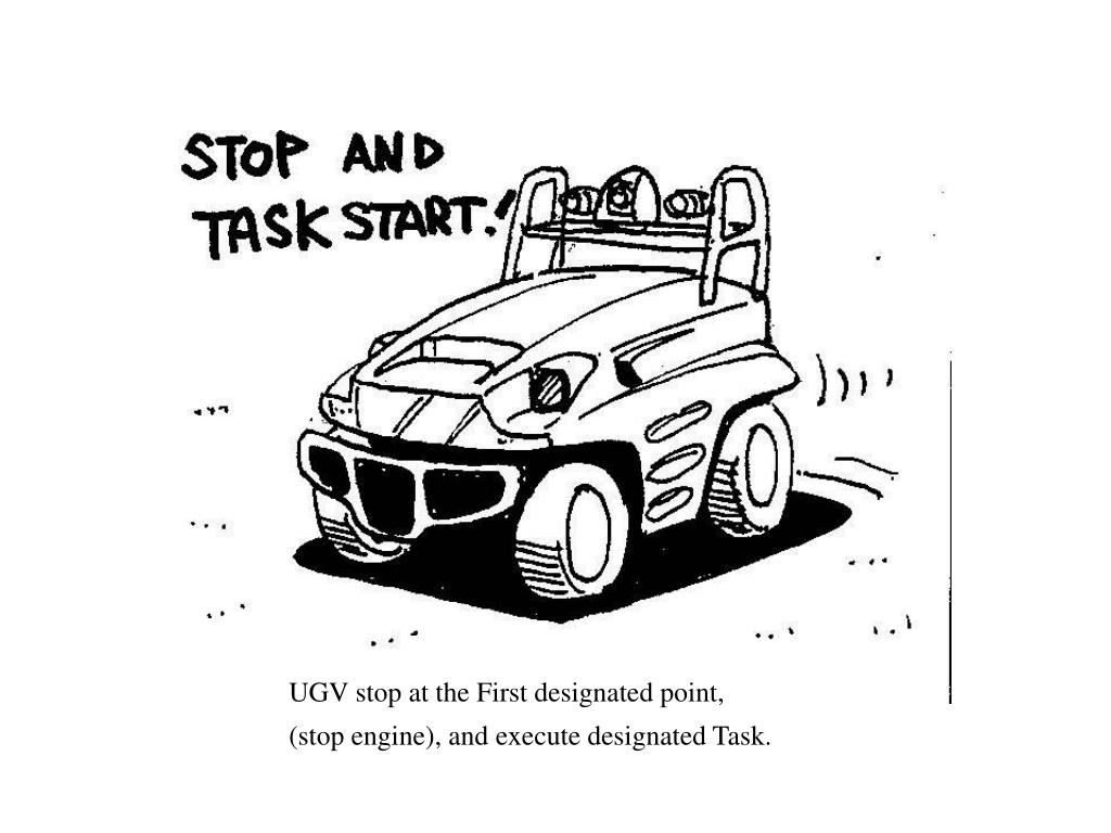 UGV stop at the First designated point, (stop engine), and execute designated Task.
