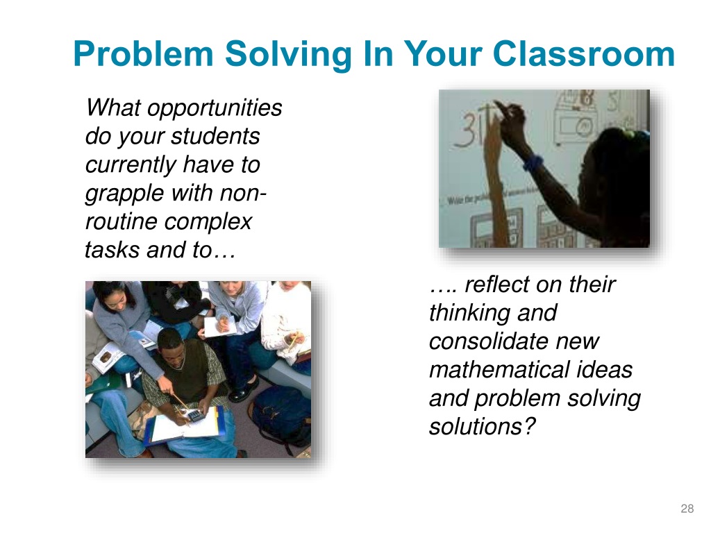 Problem Solving In Your Classroom What opportunities do your students currently have to grapple with non-routine complex tasks and to… …. reflect on their thinking and consolidate new mathematical ideas and problem solving solutions?