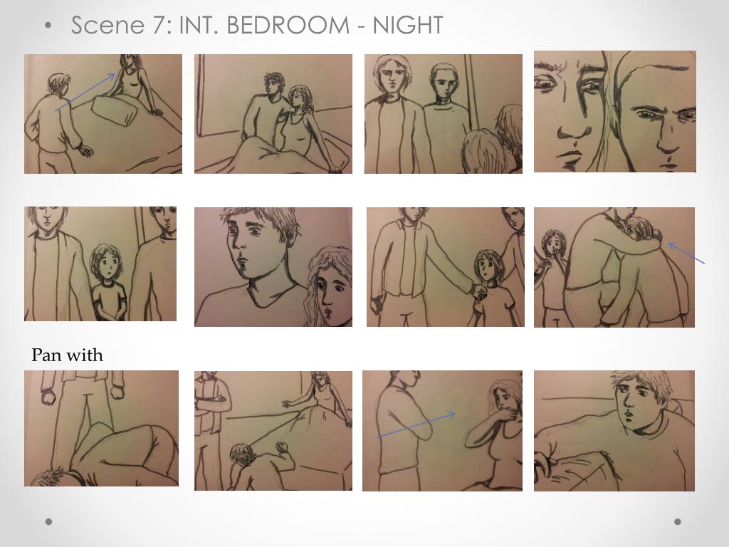 Scene 7: INT. BEDROOM - NIGHT Pan with