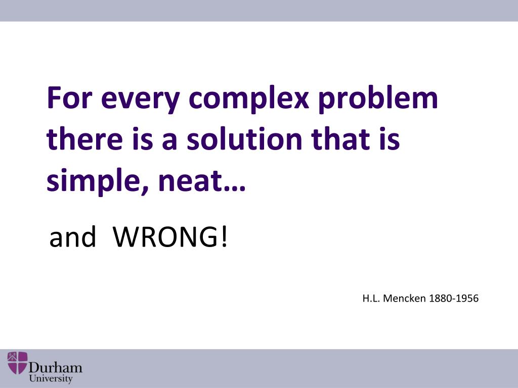 and WRONG! H.L. Mencken 1880-1956 For every complex problem there is a solution that is simple, neat…