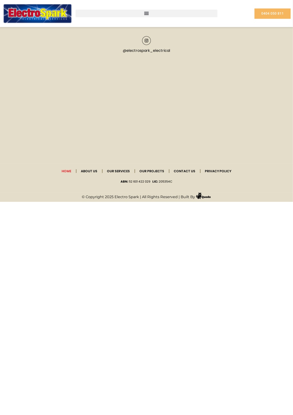 info@espark.net.au commitment to customer satisfaction, quality products, and community support. 0404 050 811 @electrospark_electrical @electrospark_electrical HOME ABOUT US OUR SERVICES OUR PROJECTS CONTACT US PRIVACY POLICY ABN: 52 601 422 029 LIC: 205354C © Copyright 2025 Electro Spark | All Rights Reserved | Built By