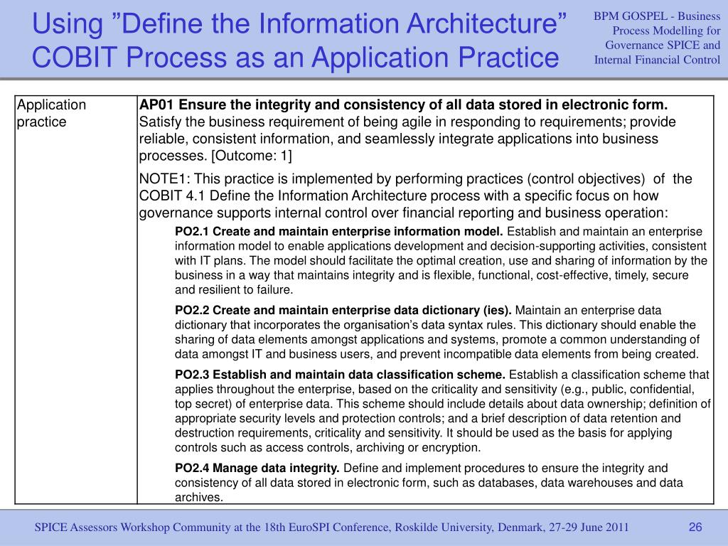 Using ”Define the Information Architecture” COBIT Process as an Application Practice