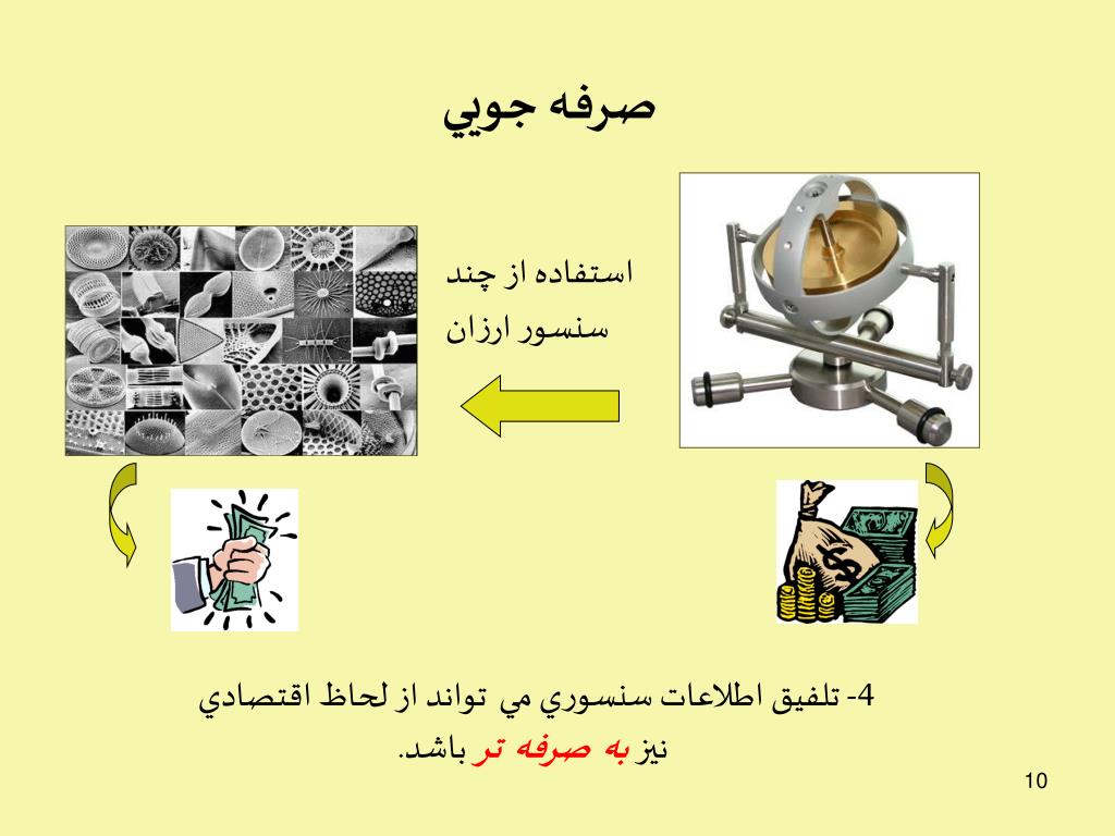 صرفه جويي استفاده از چند سنسور ارزان 4- تلفيق اطلاعات سنسوري ميتواند از لحاظ اقتصادي نيز بهصرفهتر باشد.
