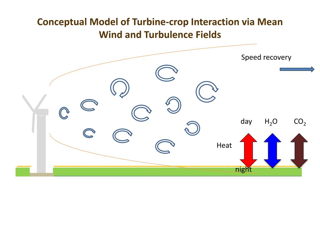 Conceptual Model of Turbine-crop Interaction via Mean Wind and Turbulence Fields Speed recovery _____________________________________ day H2O CO2 Heat night