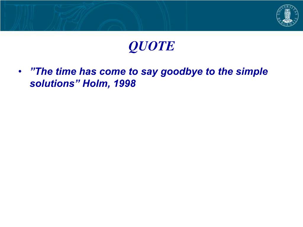 QUOTE • ”The time has come to say goodbye to the simple solutions” Holm, 1998