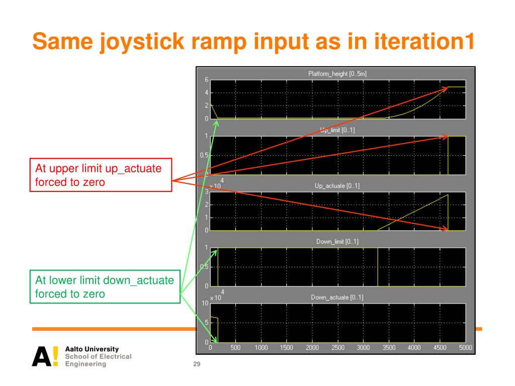 Samejoystickramp input as in iteration1 At upperlimitup_actuateforced to zero At lowerlimitdown_actuateforced to zero
