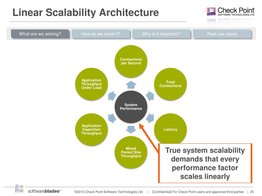 Linear Scalability Architecture What are we solving? How do we solve it? Why is it important? Real use cases True system scalability demands that every performance factor scales linearly