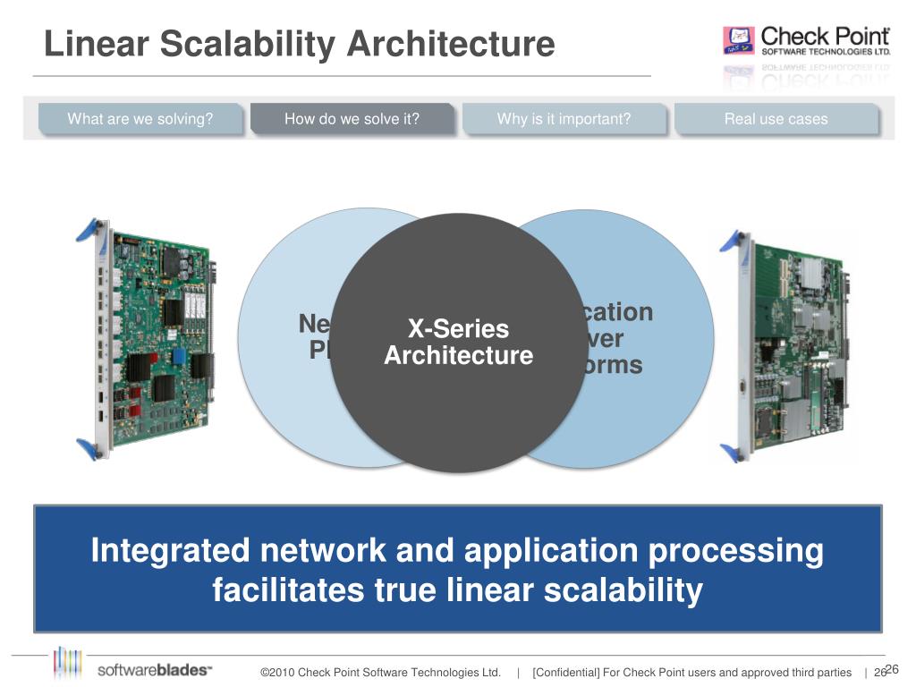 Linear Scalability Architecture What are we solving? How do we solve it? Why is it important? Real use cases Integrated network and application processing facilitates true linear scalability 26