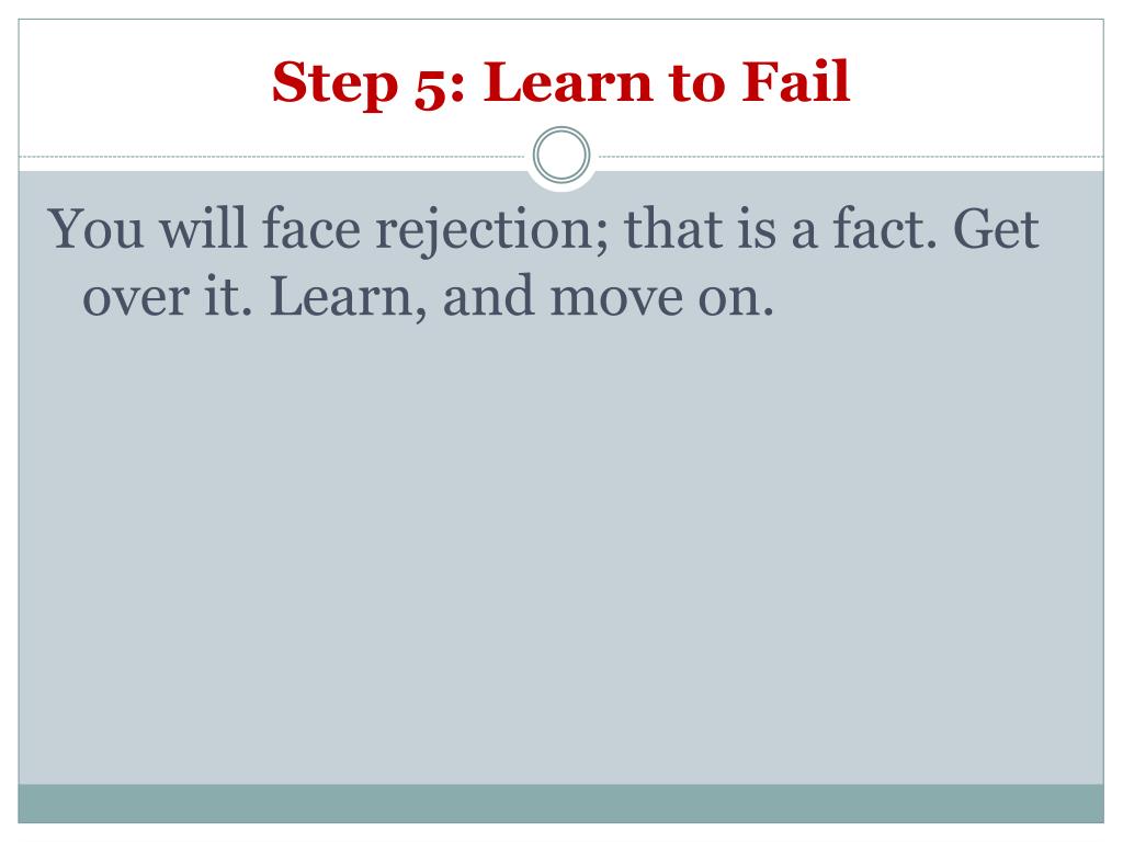 Step 5: Learn to Fail You will face rejection; that is a fact. Get over it. Learn, and move on.