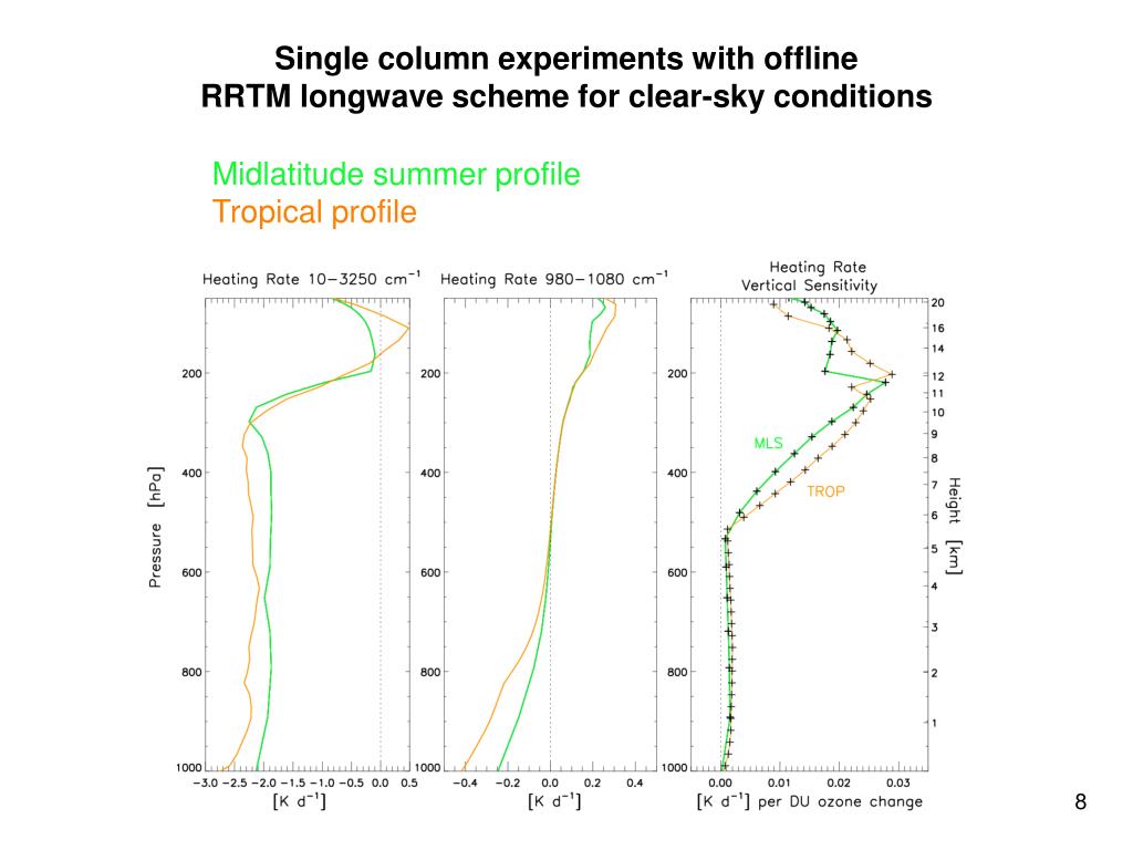Single column experiments with offlineRRTM longwave scheme for clear-sky conditions Midlatitude summer profile Tropical profile