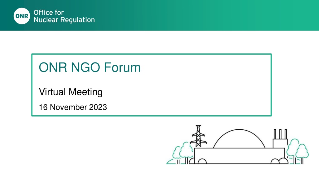 Dr. Jill Sutcliffe and Rachel Grant co-chair the ONR-NGO Forum Virtual Meeting in November 2023. Updates include key findings from the ONR Chief Nuclear Inspector, Mark Foy, and information on Hinkley Point C, Sizewell C, Taishan, and GDA activities. Discussions cover nuclear site health and safety, project readiness, and upcoming permissioning activities. The meeting also focuses on Sizewell C updates, NSL assessment, Taishan reactor status, EPR fuel and core experiences, and GDA progress on Rolls-Royce SMR and Great British Nuclear competition.