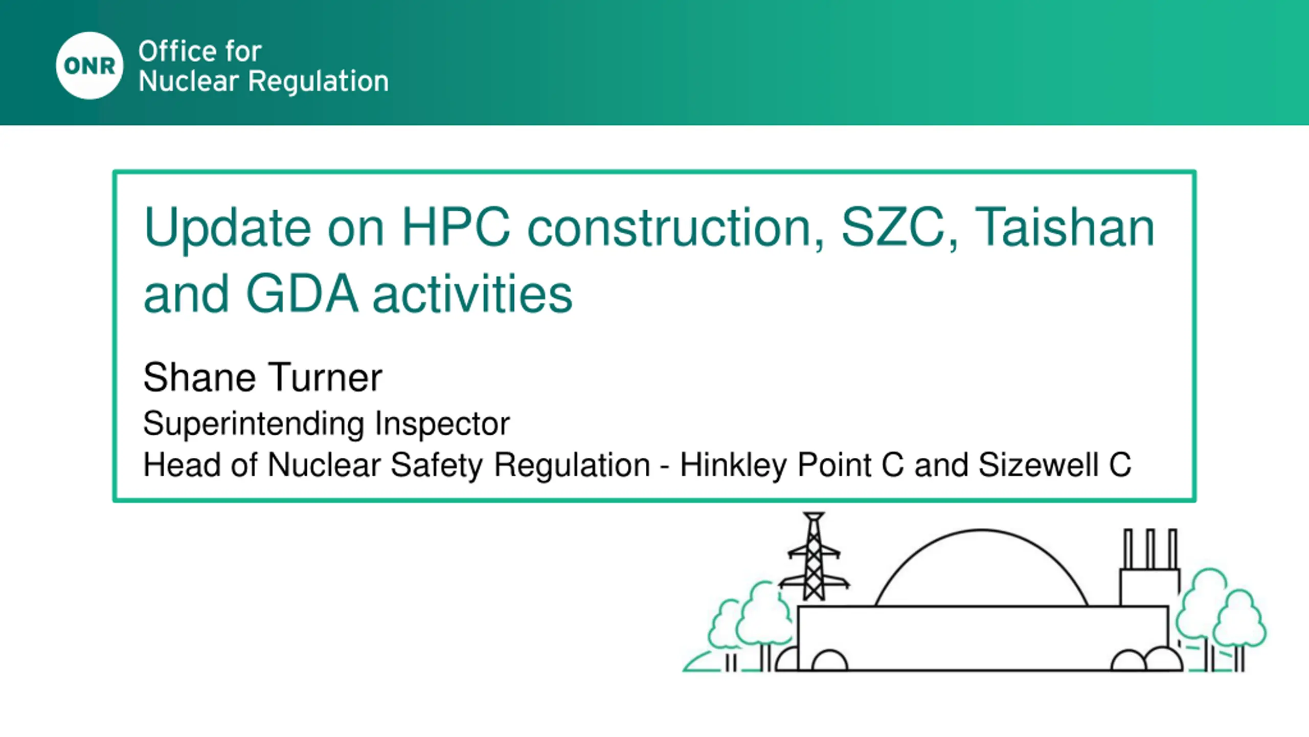 Update on HPC construction, SZC, Taishan and GDA activities Shane Turner Superintending Inspector Head of Nuclear Safety Regulation - Hinkley Point C and Sizewell C