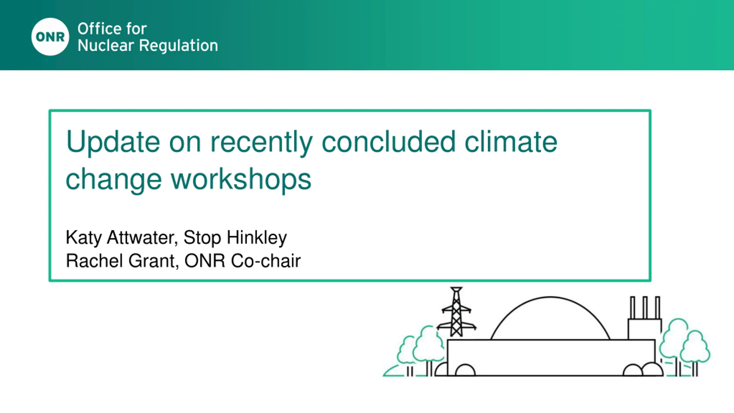 Update on recently concluded climate change workshops Katy Attwater, Stop Hinkley Rachel Grant, ONR Co-chair