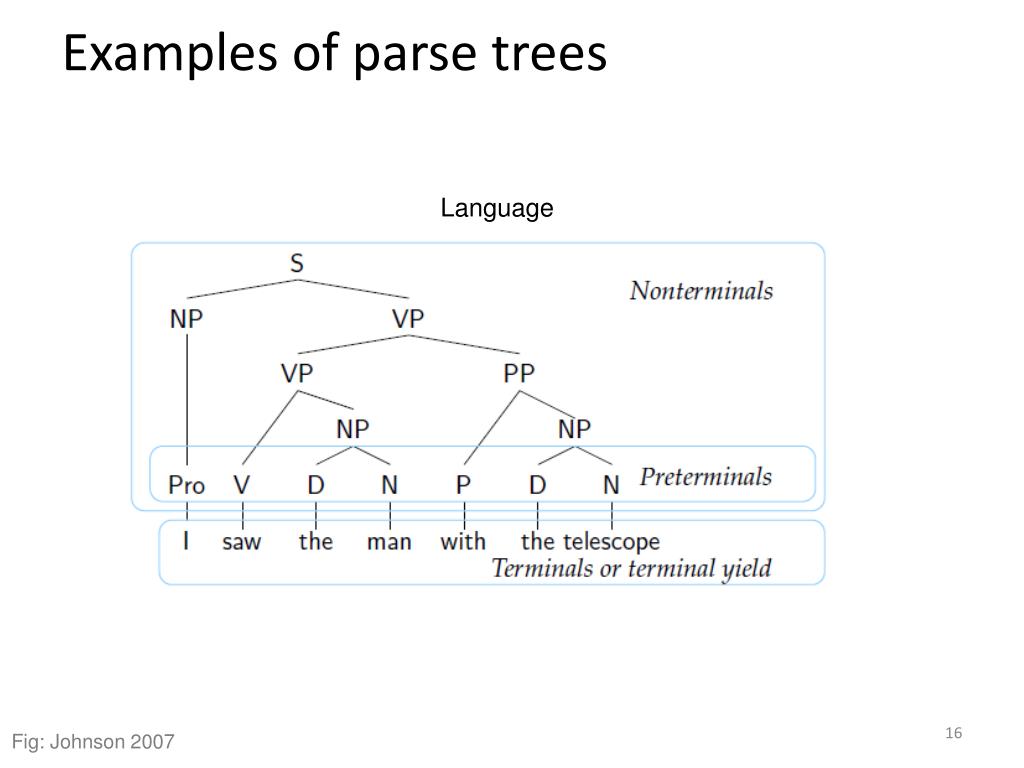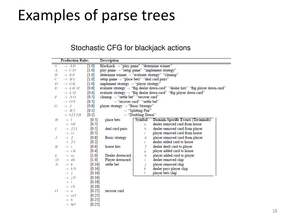 Examples of parse trees Scene parse Object Parse Figs: Zhu and Mumford 2007