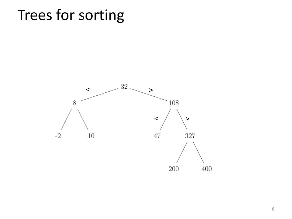 More terminology m-ary tree: each node can split into m subtrees full: each node splits or times complete: all leaves have the same height Balanced: all leaves are approximately the same height How many nodes in a full m-ary tree with internal nodes? What are the lower/upper bounds on the number of nodes of an m-ary tree with height ? overhead