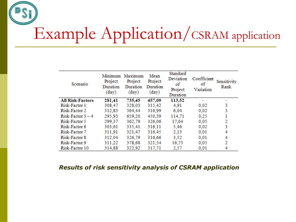 Example Application/CSRAM application Results of risk sensitivity analysis of CSRAM application
