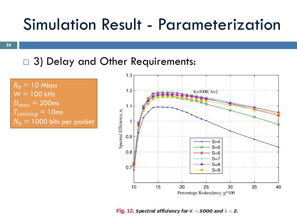 Simulation Result - Parameterization • 3) Delay and Other Requirements: = 10 MbpsW = 100 kHz = 200ms= 10ms = 1000 bits per packet