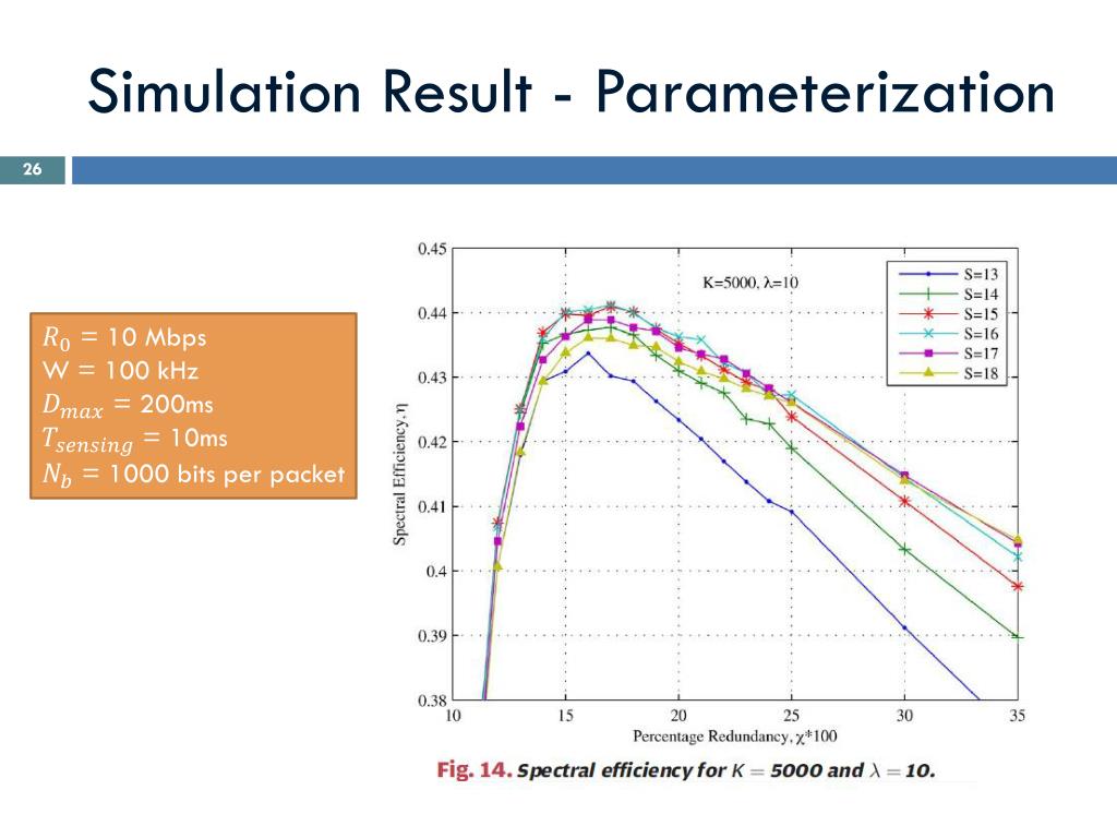 Simulation Result – Performance Analysis • Observation in Figs. 12-14: • Dependence on XFor each value of S, attains a maximum value at a specific value of X . • Dependence on S ηattains another maximum at a specific value of S. • Dependence on λ η decreases as λincreases