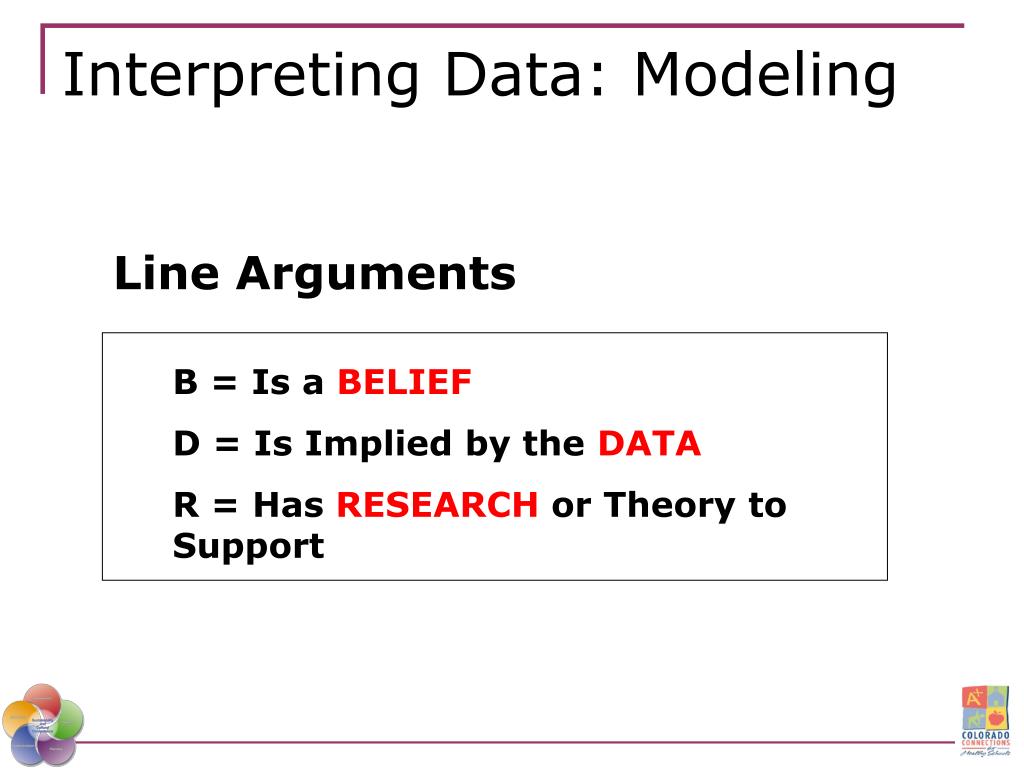 Interpreting Data: Modeling Line Arguments B = Is a BELIEF D = Is Implied by the DATA R = Has RESEARCH or Theory to Support