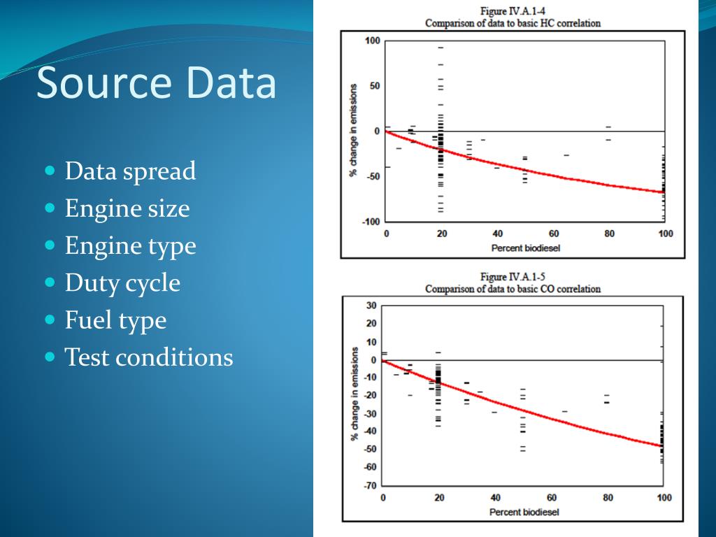 Source Data • Data spread • Engine size • Engine type • Duty cycle • Fuel type • Test conditions