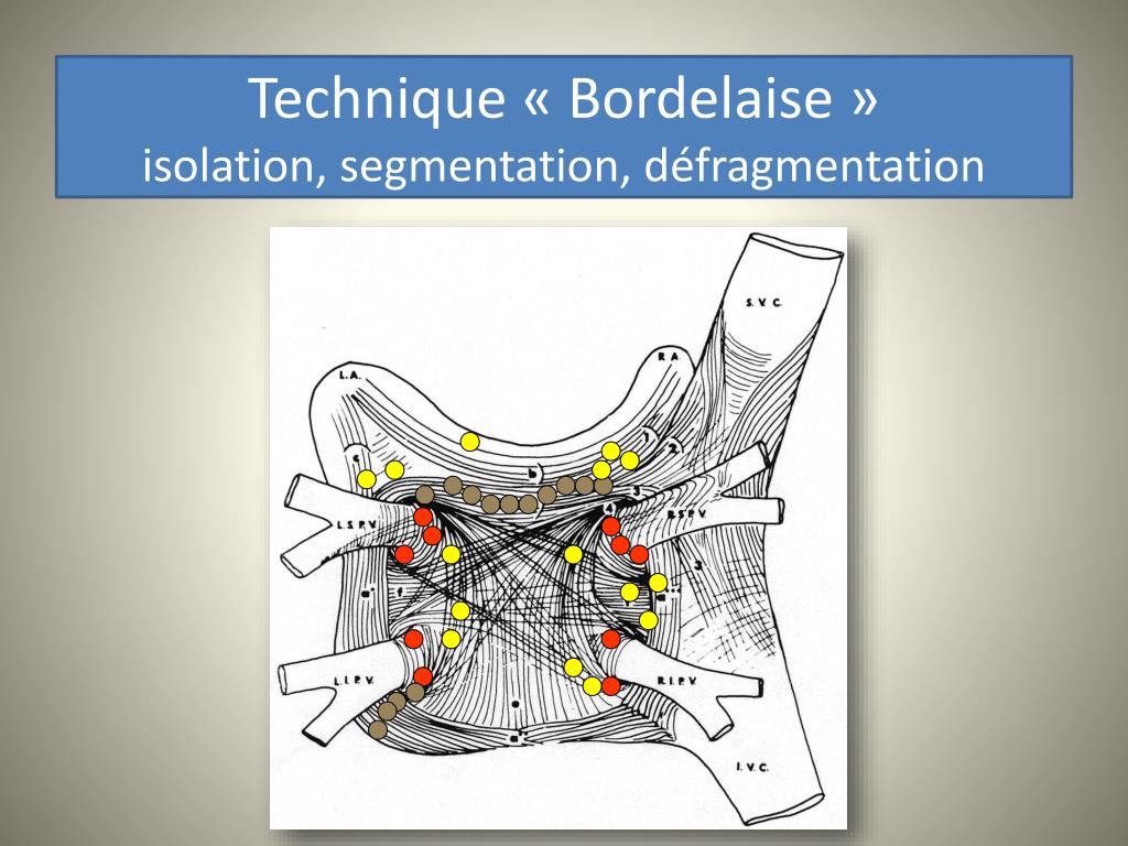 Technique « Milanaise »isolation et segmentation anatomique Pas d’End point electro-physiologique Méthode purement anatomique