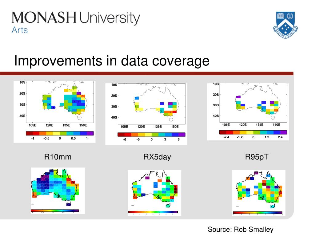 Improvements in data coverage R10mm RX5day R95pT Source: Rob Smalley