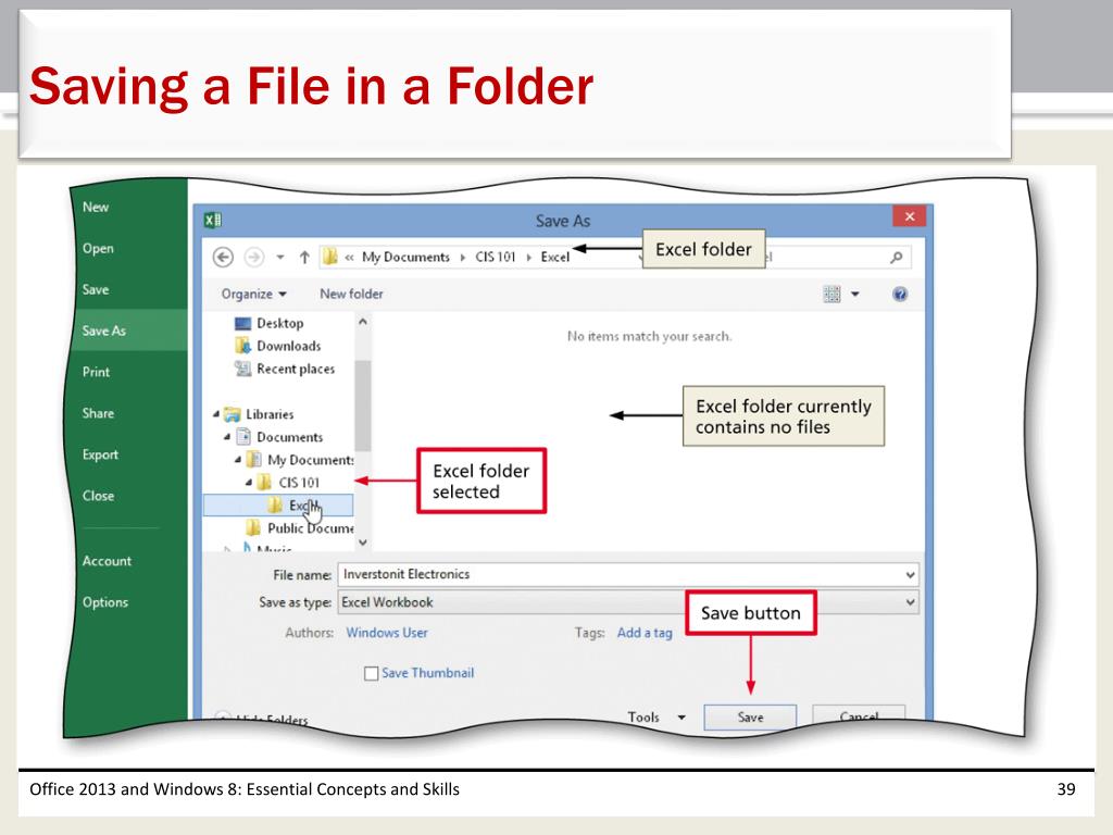 Saving a File in a Folder Office 2013 and Windows 8: Essential Concepts and Skills