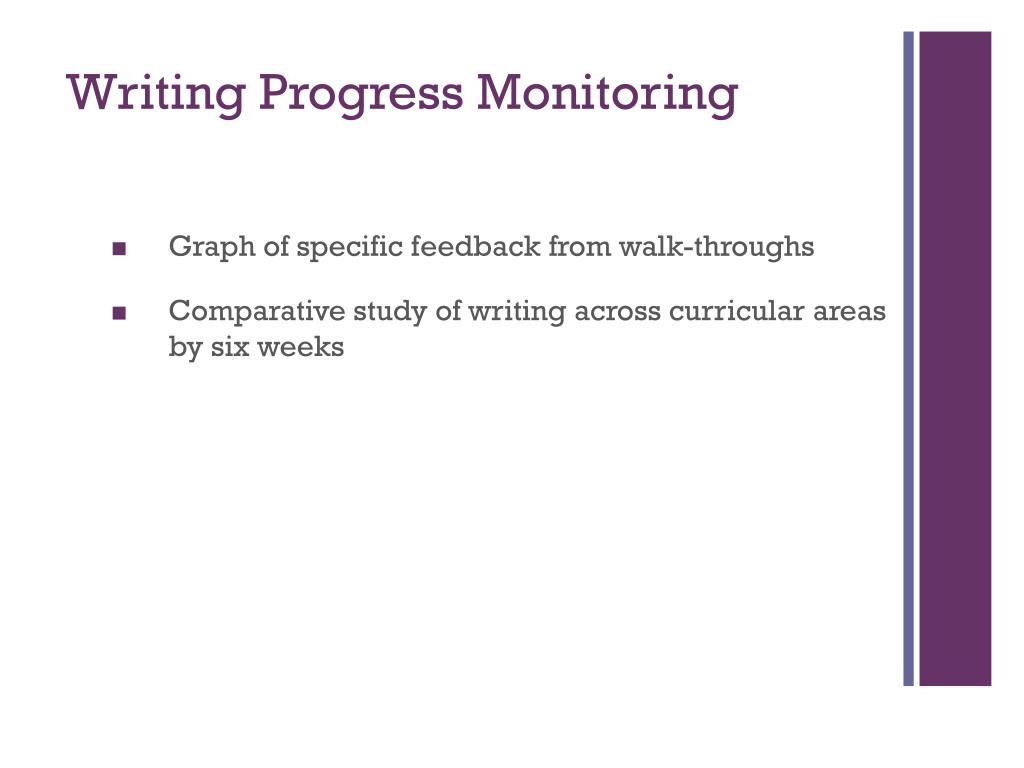 Writing Progress Monitoring • Graph of specific feedback from walk-throughs • Comparative study of writing across curricular areas by six weeks