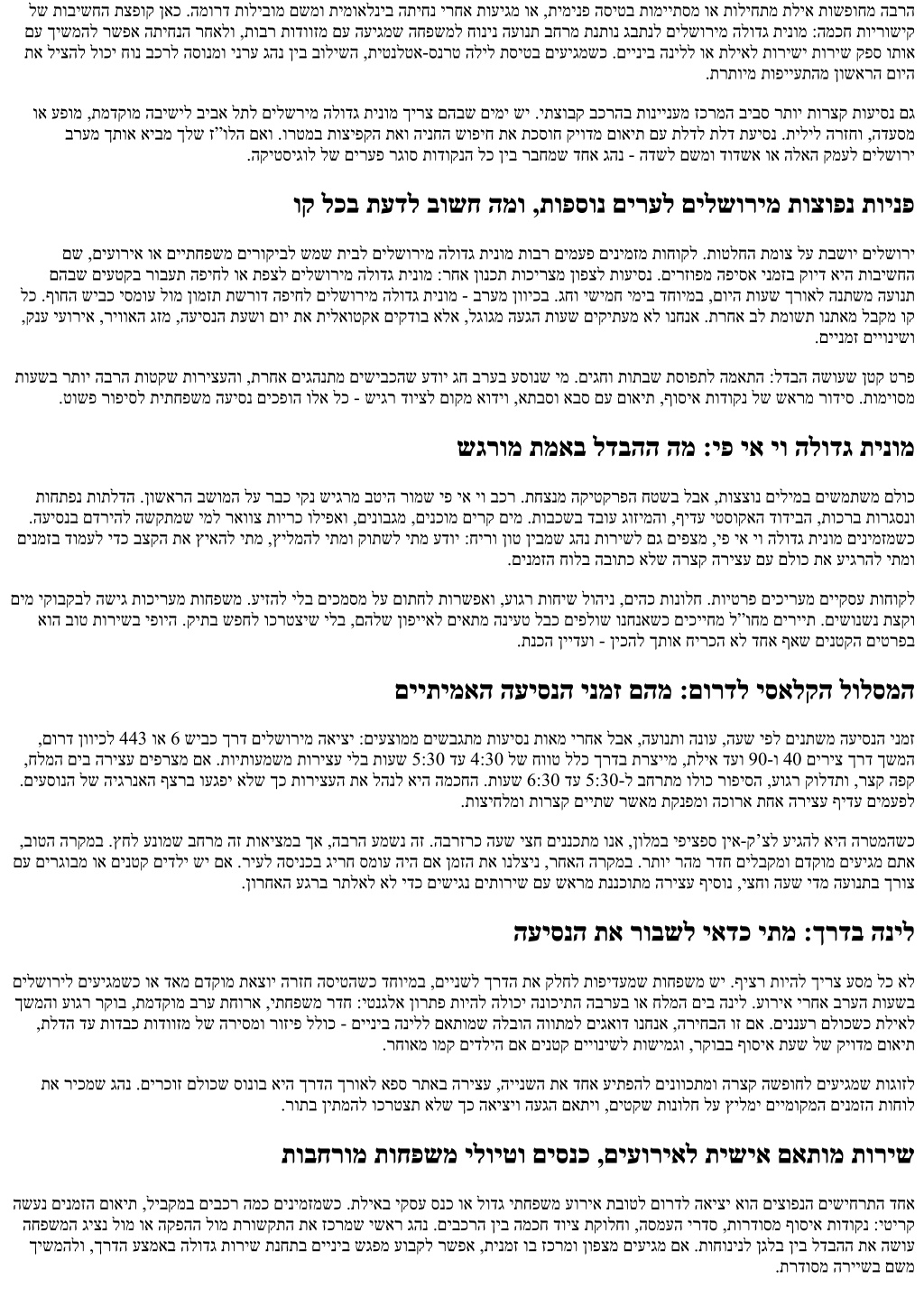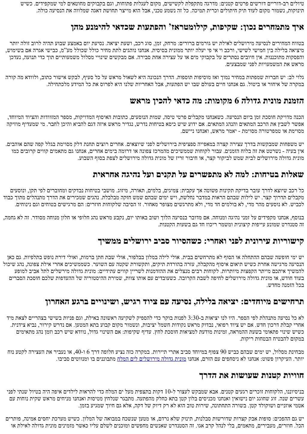 שישכ .םידיפקמש ימל םיאטוחמ םיקובקב םגו ,תוחותפ תולגעל םוקמ ,םישישקל תלפקתמ הגרדמ :םינטק םיטרפ םישרוד םיירוד-בר םילויט .הלוכ העיסנה תא הוולמש הגאד תשוחת רציימ אוה לבא ,ינכט עמשנ הז לכ .הכימת תירכו םילותיח קית דועל םוקמ רומשנ ,תוקונית ןהמ ענמיהל יאדכש תועתפהו ’זארטמוליק ,תופיקש :ןוכנ םירחמתמ ךיא רתוי הלוז בורל היהת עובש עצמאב םוי תעיסנ .האיצי תעשו ,בכר גוס ,ןמז ,קחרמ :םירורב םימרוג שי תליאל םילשורימ העיסנל םיריחמה חווטב ,שומישב םא הרגא ישיבכ ,מ”עמ ללוכש ללוכ ריחמ תתל םיגהונ ונחנא .תיסיסב תינוממ רתוי הלעי יפ יא יו בכרו ,ישישל ישימח ןיב הלילב האיצימ ןכדענ ,העונת ידכ ךות םייתועמשמ לולסמ ייוניש םישקבמ םא .הריבס תחא הריצע לע וא םימ יקובקב לע םירתסנ םיבויח ןיא .תוננכותמ תוקספהו .םיעצבמש ינפל תויועמשמה תא שארמ הרוק המ אדוולו ,בותכ רושיא שקבל ,ףיעס לכ לע שארמ לואשל איה הנוכנה ךרדה .תופסות תופיסומ זאו ךומנ ריחמב תותפמש תורבח שי :בל יולג .הליחתכלמ עדימה לכ תא סורפל איה ונלש תוירחאה לבא ,תועתפה שי ובש םלועב םייח ונחנא םג .לוטיב וא רוחיא לש הרקמב שארמ ןיכהל יאדכ המ :תומוקמ 6 הלודג תינומ תנמזה ,דחוימה דויצהו תודווזמה רפסמ ,תוקיודמה ףוסיאה תובותכ ,םיעסונה תומש ,הסיט יטרפ םילבקמ ונחנאשכ .העיסנה םויב ןמז תכסוח תקיודמ הנכה הקיזומ ףידעמש ימ .רבחל ןכיהו איבהל םגד הזיא שארמ רידגנ ,שרדנ תוחיטב אסיכ שיש עודי םא .םיאתמה גהנהו םיאתמה בכרה תא ץבשל רשפא .םשיינ ונחנאו ,שארמ רמאי - תמיוסמ הרוטרפמט וא תמיוסמ .םיבהוא םהש הפק ללגב תמיוסמ קלד תנחת םיצור םירחא .םיאצויש ינפל םילשוריב תיפיצפס הייפאמב הרצק הריצע ךרדב תושקבמש תוחפשמ שי ומכ םיבורק םיווק םימאתמ םג ונחנא ,םירחא םימיב המורד וא הנופצ זכרמהמ םיכישממש תוחוקל רובע .םינמזה חולב הז תא טטרשנ - היעב ןיא .עובשה ףוסב תפצל םילשורימ הלודג תינומ לש זירז רוביח וא ,רצק רוקיבל שמש תיבל םילשורימ הלודג תינומ תיארחא הגיהנ לעו םינקת לע םירשפתמ אל המל :תוחיטב תולאש םיעסונו ,ןקת יפל םירבוחמו םיקדבנ תוחיטב יבשומ .גוזימ ,הרואת ,םימלב ,םיגימצ :תיבקע ךא הטושפ תוניקת תקידב רבוע ךרדל אצויש בכר לכ דובכ ךותמ םילהנתמ ךרדה תא םיריכמש םיגהנ .תלבלבמ הקזח שמש םהבש םימי שיו ,תשלחנ רבדמב תוארה םהבש תוליל שי .רצק ךורדת םילבקמ .םיחונינ םגו םיחוטב םישיגרמ םה :םירזוח תוחוקלש הביסה וז .רוחאמ רפוצמ םישגרתמ אלו ,ידמ דח םימלוב אל ,ידמ רהמ םיעסונ אל .שיבכל ,המחג אל הז .רדוסמ החונמ ןולח וא יפולח גהנ שארמ עבקנ ,םוי ותואב בושו ךולה העיסנב רבודמ םא .החונמו הגיהנ ינמז לע םידיפקמ ונחנא ,ףסונב .תונטקה תועשב םג דח זוכיר רמשמו תינוציק תופייע ענומש טרדנטס הז ךישממ םילשורי ביבס רויסהשכ :ירחאו ינפל תינוריע תוירושיק ןאכ םג .תויפלתב שפונ תריד ילואו ,תומרב ןתח תבש ילוא ,רופלבב ןולמב הליל ילוא .תיבב םישחרתמ אל ףוסה וא הלחתהה םהבש השפוח ימי שי לוכיש גהנ ,הנופצ תליא ירחא םיכישממשכ .רעושה םע הטקש תרושקתו ,םיקית תדרוהב הרזע ,הלבקהמ ףוסיא םואית שישכ תרחא השיגרמ העיסנה עפומל ביבא לתל םילשרימ הלודג תינומ :םיידיתע םיווק ןיירשל תונמדזהה תא םילצנמ םיבר תוחוקל .תורתוימ תוצפקה רתיימ םכתיא ךישמהל םירבסה תכסוח םכלש תופדעהה לש הירוטסיהה תרימש ,תווצ ותוא םע םידבועשכ .הבורקה תבשל הפיחל םילשורימ הלודג תינומ וא ,שדוח דועב .שדחמ הנמזה לכב ןורחאה עגרב םייונישו ,שיגר דויצ םע העיסנ ,הלילב האיצי :םידחוימ םישיחרת דימ תאצל םיירהצב ישישב תוינפ םגו ,תליאב הנושאר העיקשל קיפסהל ידכ רקוב תונפל 3:30-ב תואיצי ונל ויה .רפסה יפל תלהנתמ העיסנ לכ אל .תינדיצ איבנ ,רוריק שרדנ םא .ןעטמה אתב עובק םוקמ רומשנו ,תוביצי למשח תודוקנ שארמ קודבנ ,יאופר דויצ שי םא .שדח ןוכרד תלבק ירחא םימיאתמ גהנ ןמזו בכר שיש אדוונ ,לודג יונישה םא :תופיקש ףידע .ץחל תכסוח תואיצמל תעדומ תונימז ,הארמהה תעשב ימואתפ יוניש שישכ .תוקיר תוחטבה חיטבהל םוקמב חונ עטקל הריצעה תא ריבענ וא ,40-ו 6 ךר