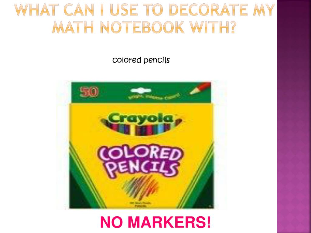 Science Notebook Supplies What can I use to decorate my math notebook with? colored pencils NO MARKERS!
