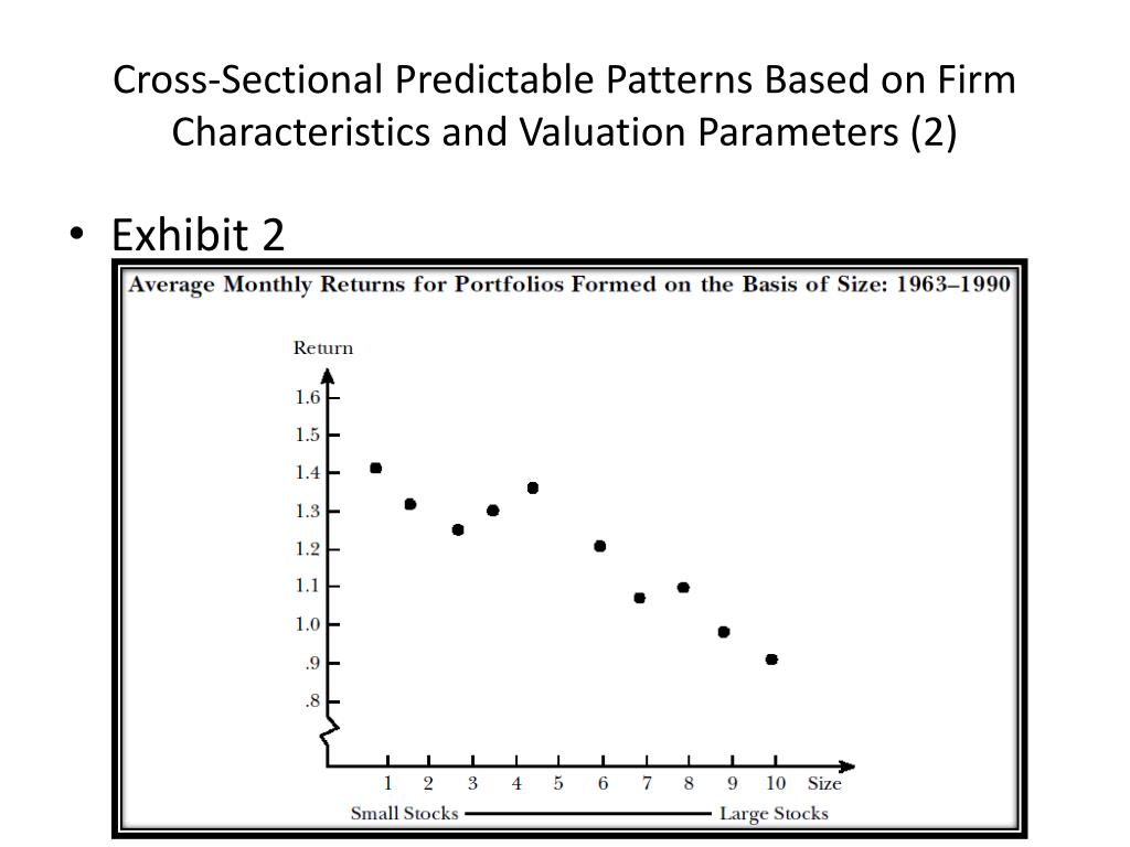 Cross-Sectional Predictable Patterns Based on Firm Characteristics and Valuation Parameters (1) • The size effect (exhibit 2) • Value stocks (exhibit 3) • The equity risk premium puzzle • Summarizing the “anomalies” and predictable patterns