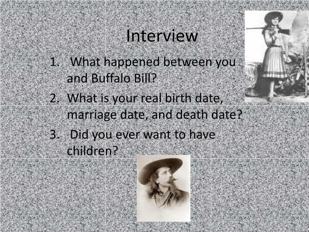 Interview What happened between you and Buffalo Bill? What is your real birth date, marriage date, and death date? Did you ever want to have children?