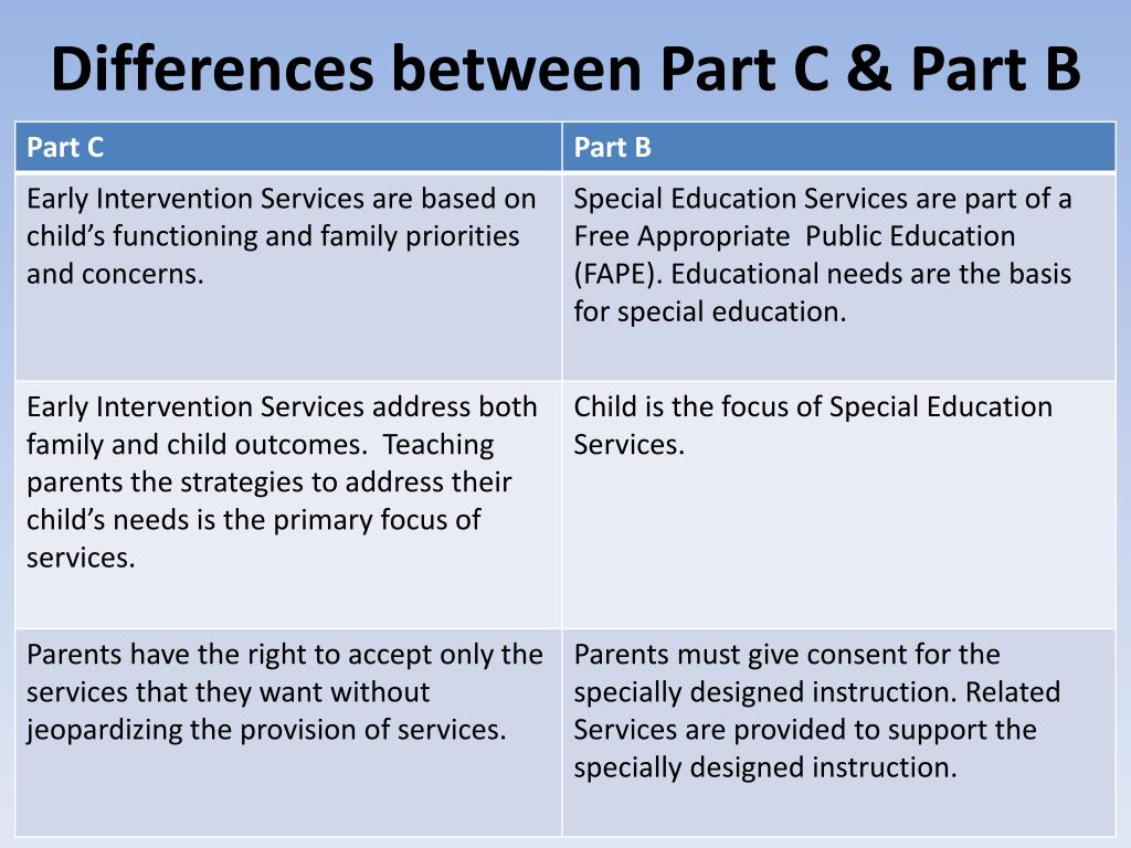 LEA Responsibilities: Part C Referrals • Invite the service coordinator or other Part C representative to the initial IEP meeting with approval of the family. • To consider the child’s IFSP including the early intervention services and natural environments statement when developing the IEP.