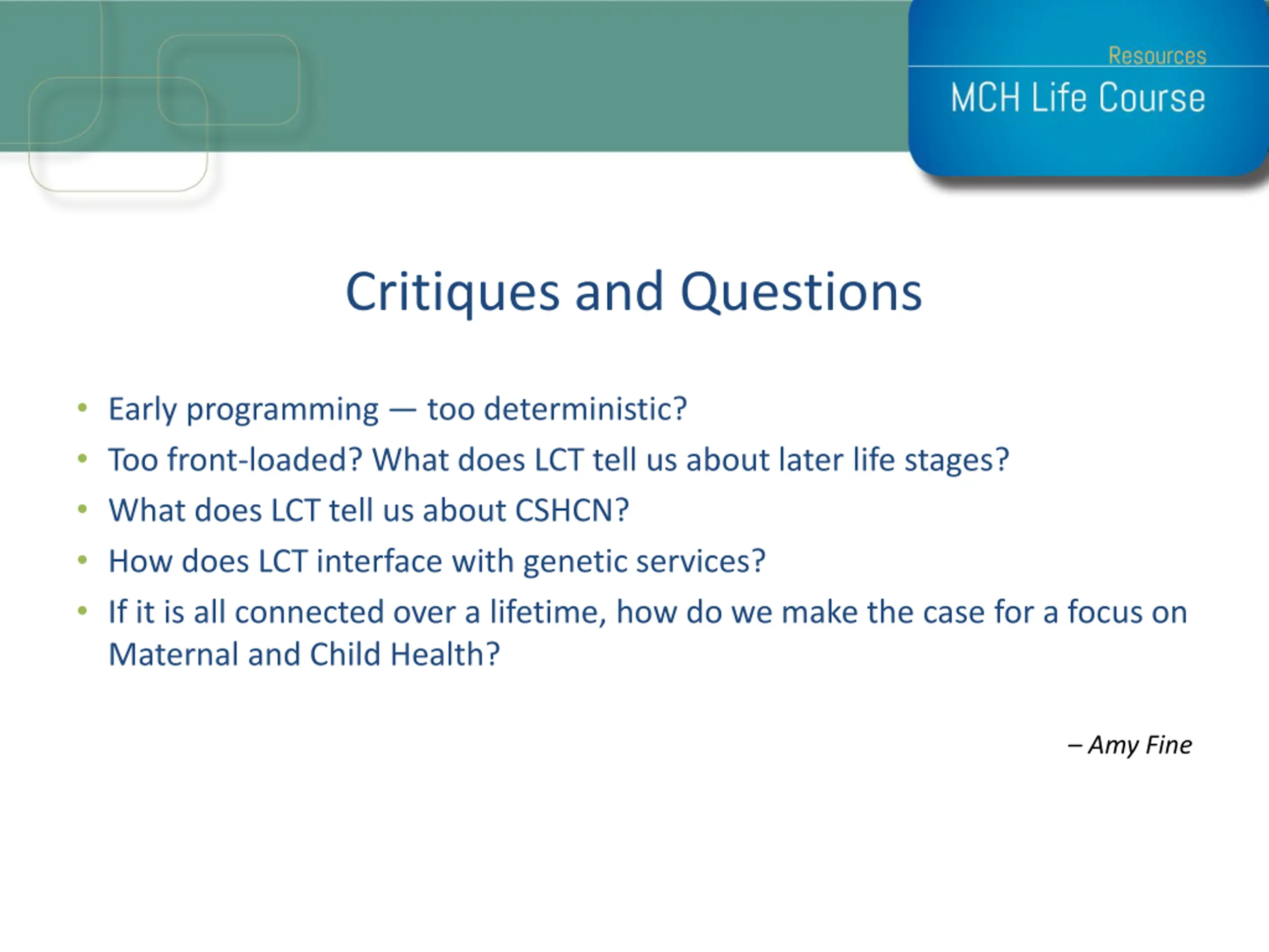 20. Critiques and Questions • Early programming — too deterministic? • Too front-loaded? What does LCT tell us about later life stages? • What does LCT tell us about CSHCN? • How does LCT interface with genetic services? • If it is all connected over a lifetime, how do we make the case for a focus on Maternal and Child Health? – Amy Fine