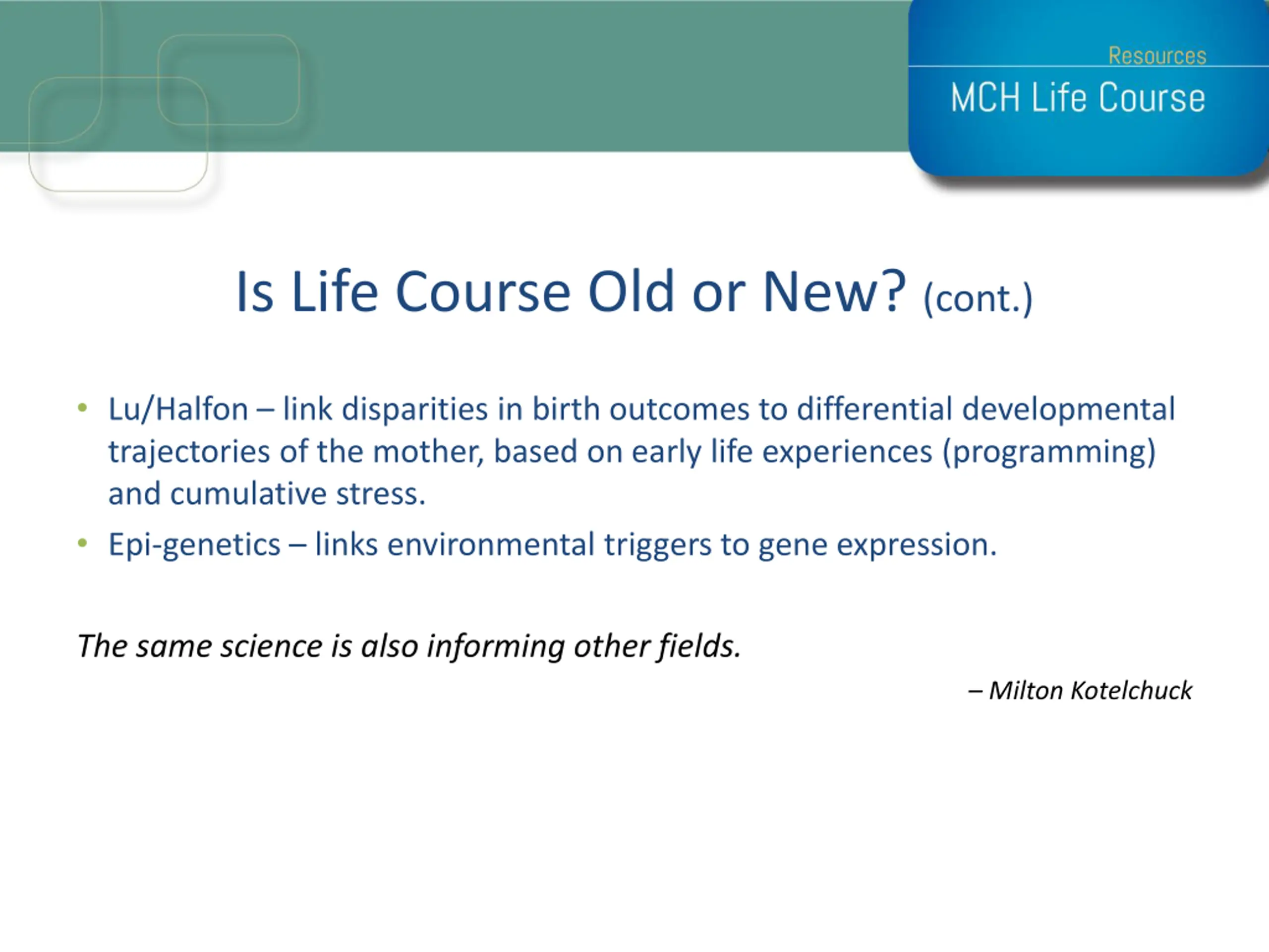 17. Is Life Course Old or New? (cont.) • Lu/Halfon – link disparities in birth outcomes to differential developmental trajectories of the mother, based on early life experiences (programming) and cumulative stress. • Epi-genetics – links environmental triggers to gene expression. The same science is also informing other fields. – Milton Kotelchuck
