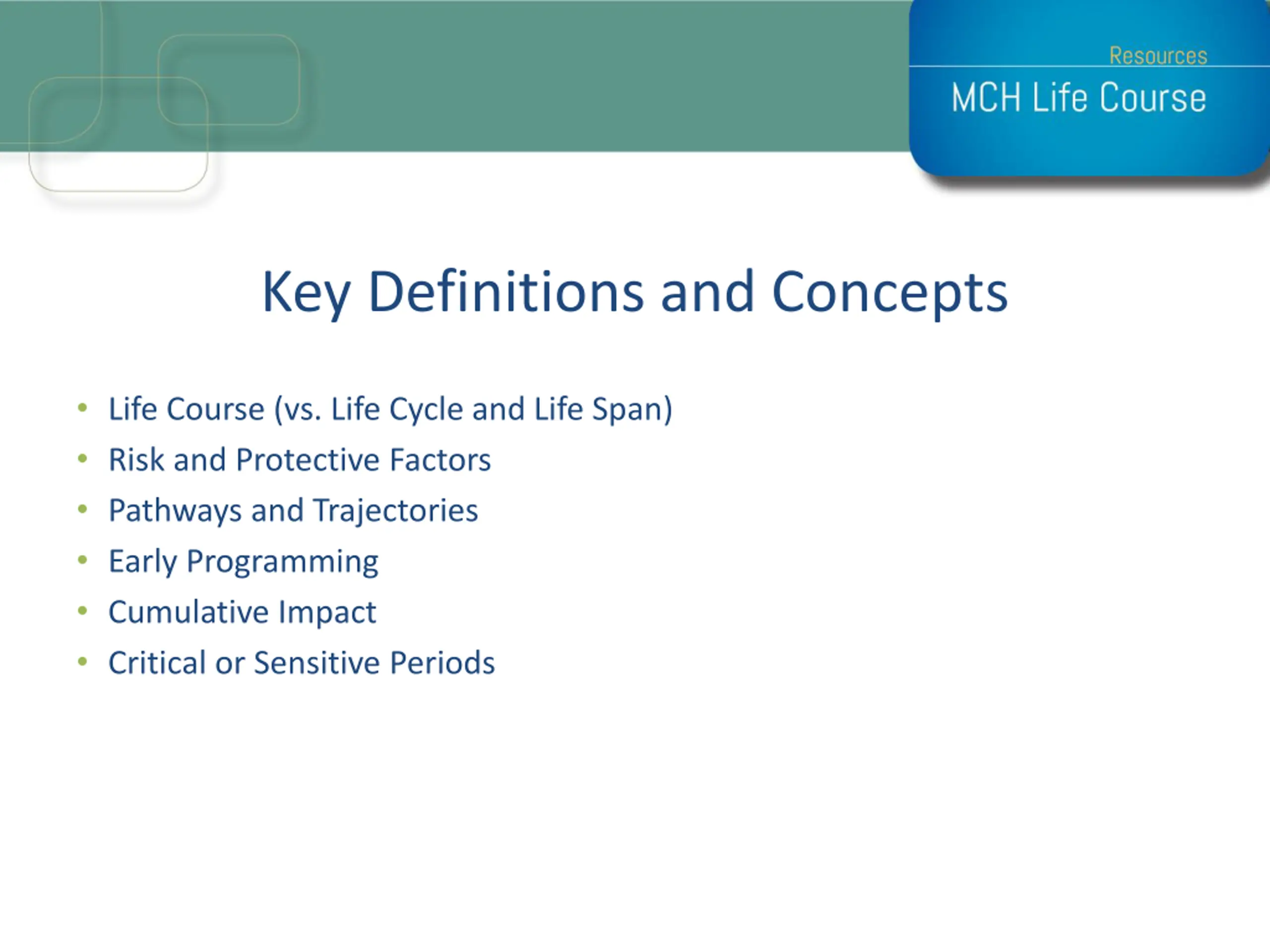2. Key Definitions and Concepts • Life Course (vs. Life Cycle and Life Span) • Risk and Protective Factors • Pathways and Trajectories • Early Programming • Cumulative Impact • Critical or Sensitive Periods