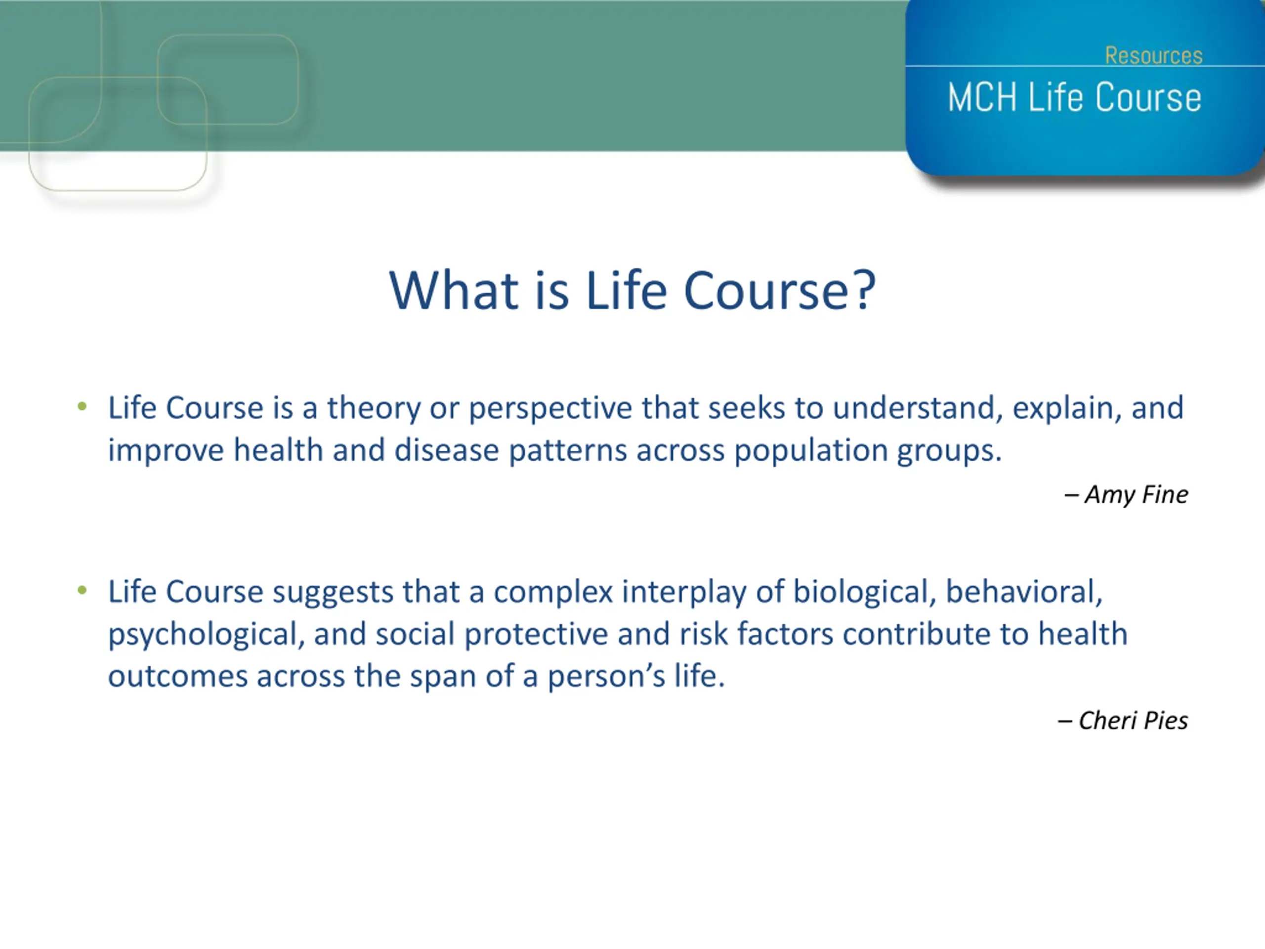 4. What is Life Course? • Life Course is a theory or perspective that seeks to understand, explain, and improve health and disease patterns across population groups. – Amy Fine • Life Course suggests that a complex interplay of biological, behavioral, psychological, and social protective and risk factors contribute to health outcomes across the span of a person’s life. – Cheri Pies